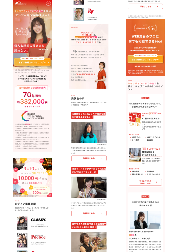 ホームページ制作 2026年1月21日 Last updated : 2026年1月21日 Hitomi 【制作時間】20時間 【使用ソフト】WordPress・Photoshop・illustrator・Figma 【担当業務】デザイン・実装 【意識した事】どのデバイスでみても見やすくなるようにレスポンシブデザイン を行いました。 氏名 メールアドレス 題名 メッセージ本文 (任意)