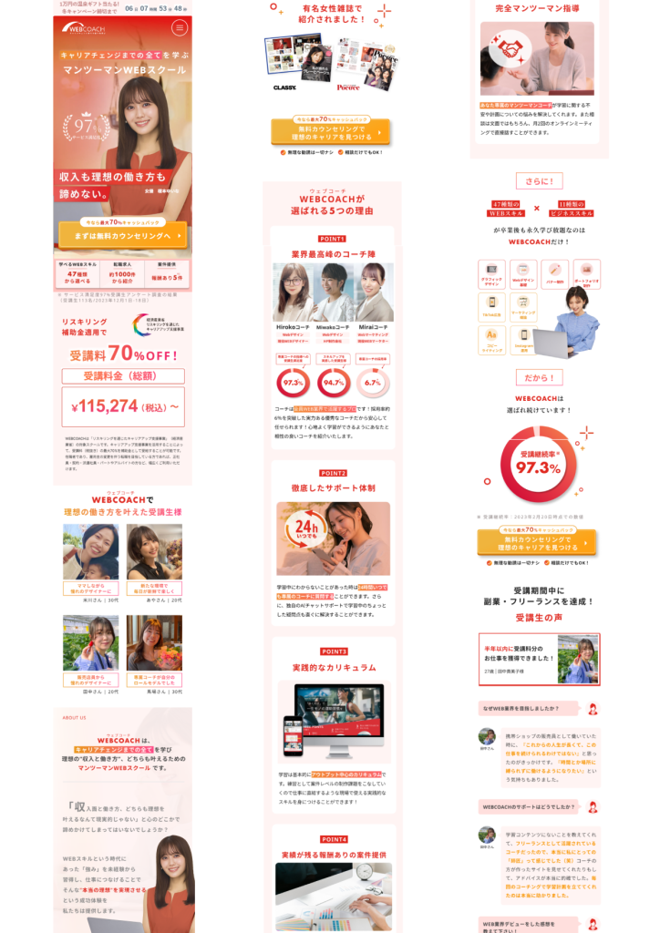 【制作時間】20時間 【使用ソフト】Photoshop・illustrator1・Figma・HTML・CSS・jquery 【担当業務】デザイン・実装 【意識した事】スクロール離脱を防ぐためjqueryで動きをつけたLPを作成しました。